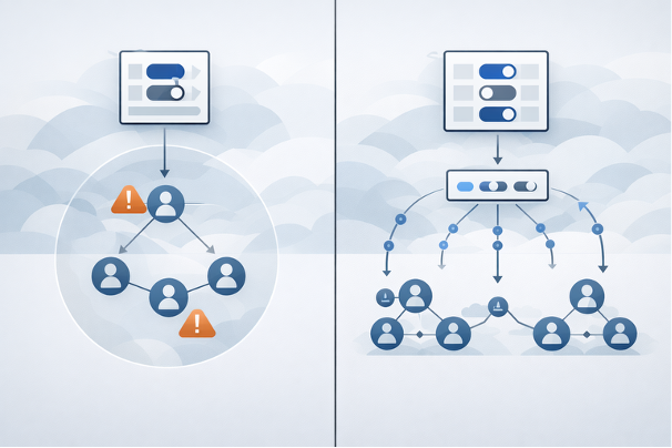 One client operating a multi‑service payments platform reduced their rollback time from approximately 30 minutes to under 2 minutes after adopting feature flags as part of their delivery workflow. Where a rollback previously required a coordinated redeployment across services, teams could now disable the problematic behavior instantly through a logical switch—without touching the underlying infrastructure. This capability turned a high‑stress operational procedure into a routine action and directly improved service reliability.