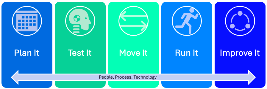 In the third phase,Move it, the actual transition begins. Now the migration happens – step by step, controlled, and with clear waves. The decisive factor is that technology, processes, and communication work together. A stable migration rhythm ensures that both IT and business units know what happens next. Important: feedback from the first migrations flows directly into the next ones. This turns a theoretical plan into a learning process.