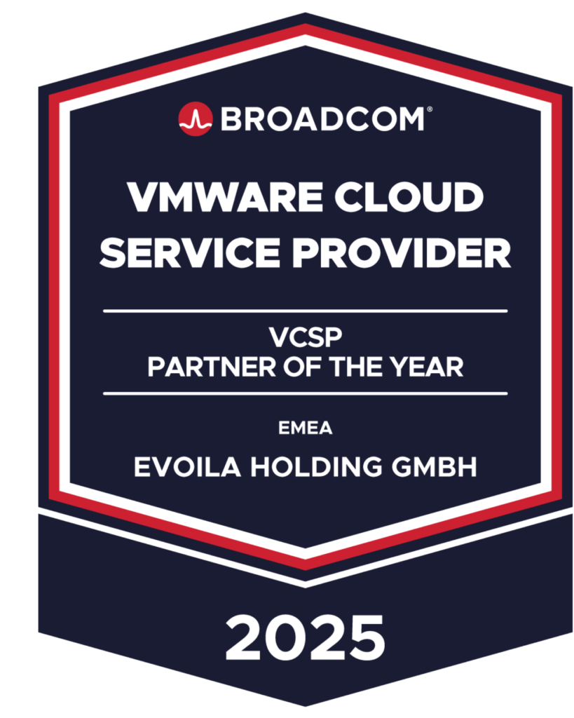 Mainz, 19. März 2026 – evoila wurde mit zwei der renommiertesten Auszeichnungen im VMware by Broadcom Partnerökosystem geehrt: dem Global VMware President’s Choice Partner of the Year sowie dem VMware Cloud Service Provider (VCSP) Partner of the Year. Beide gelten als die jeweils höchste Anerkennung in ihren Kategorien. Durch das Erreichen der höchsten Stufe in beiden Bereichen bündelt evoila automatisch alle darunterliegenden Partnerauszeichnungen.