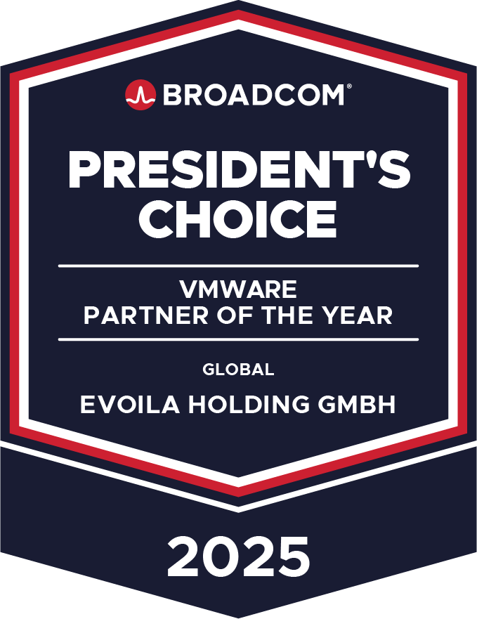 evoila has been recognized with two of the highest distinctions in the VMware by Broadcom partner ecosystem: the Global VMware President’s Choice Partner of the Year 2025 and the VMware Cloud Service Provider (VCSP) Partner of the Year. By achieving the top recognition in both categories, evoila automatically consolidates all underlying partner awards beneath each.